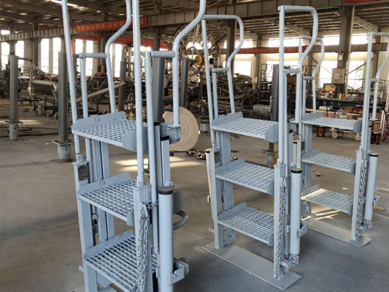 登船梯是現代大型油船碼頭油船在停靠碼頭作業(yè)過程中,裝卸作業(yè)人員和船員安全順利上下船舶的裝置。傳統(tǒng)的登船裝置是依靠由船自身攜帶的舷梯來完成。